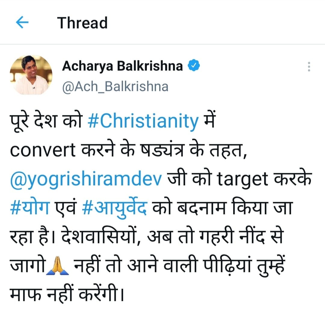 का धर्म खोज लिया गया है. अगर एलोपैथी इसाई है तो कोई बालकृष्ण महाराज से पूछे कि इस